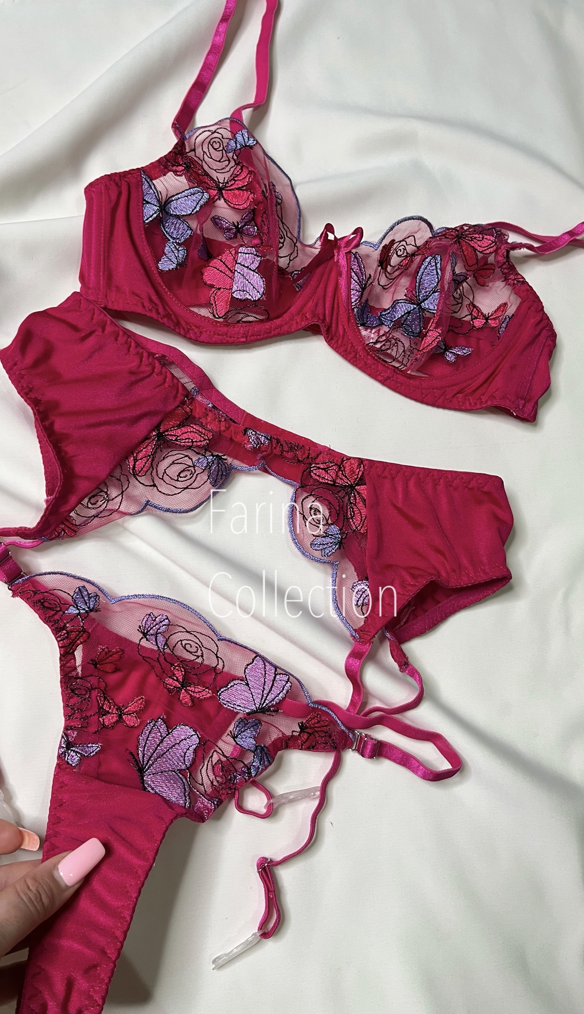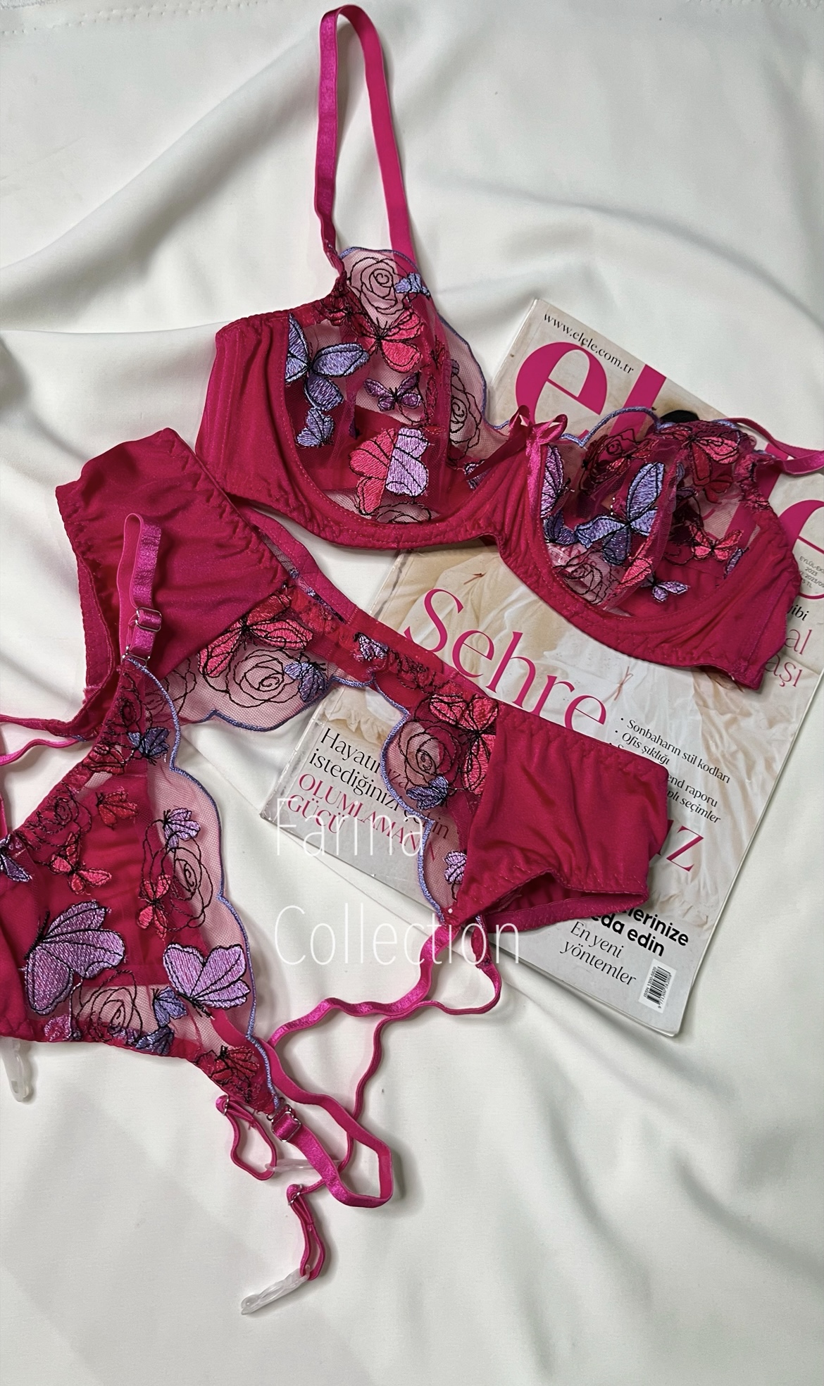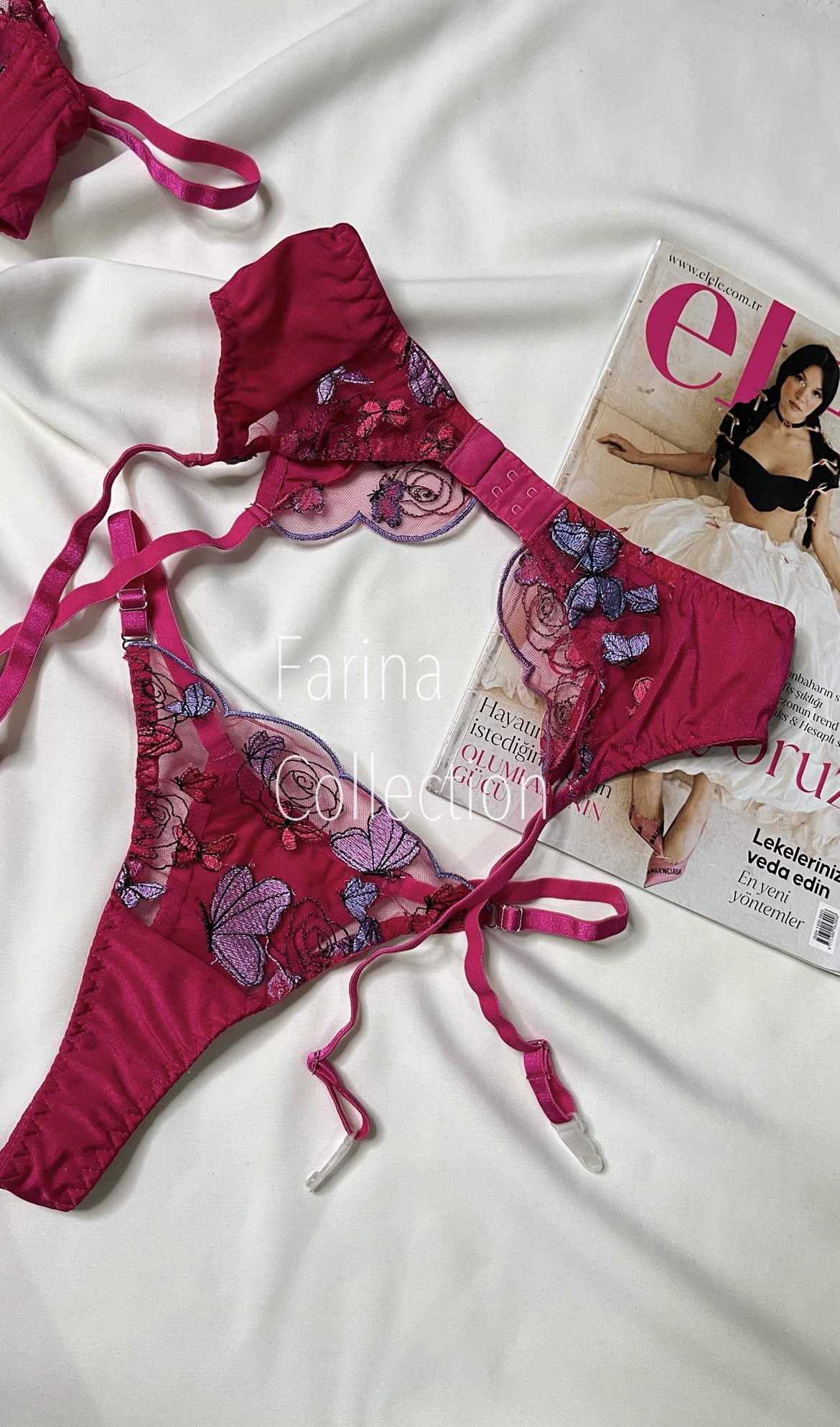 ست سه تیکه سوتین وشورت وگارتر کمری
