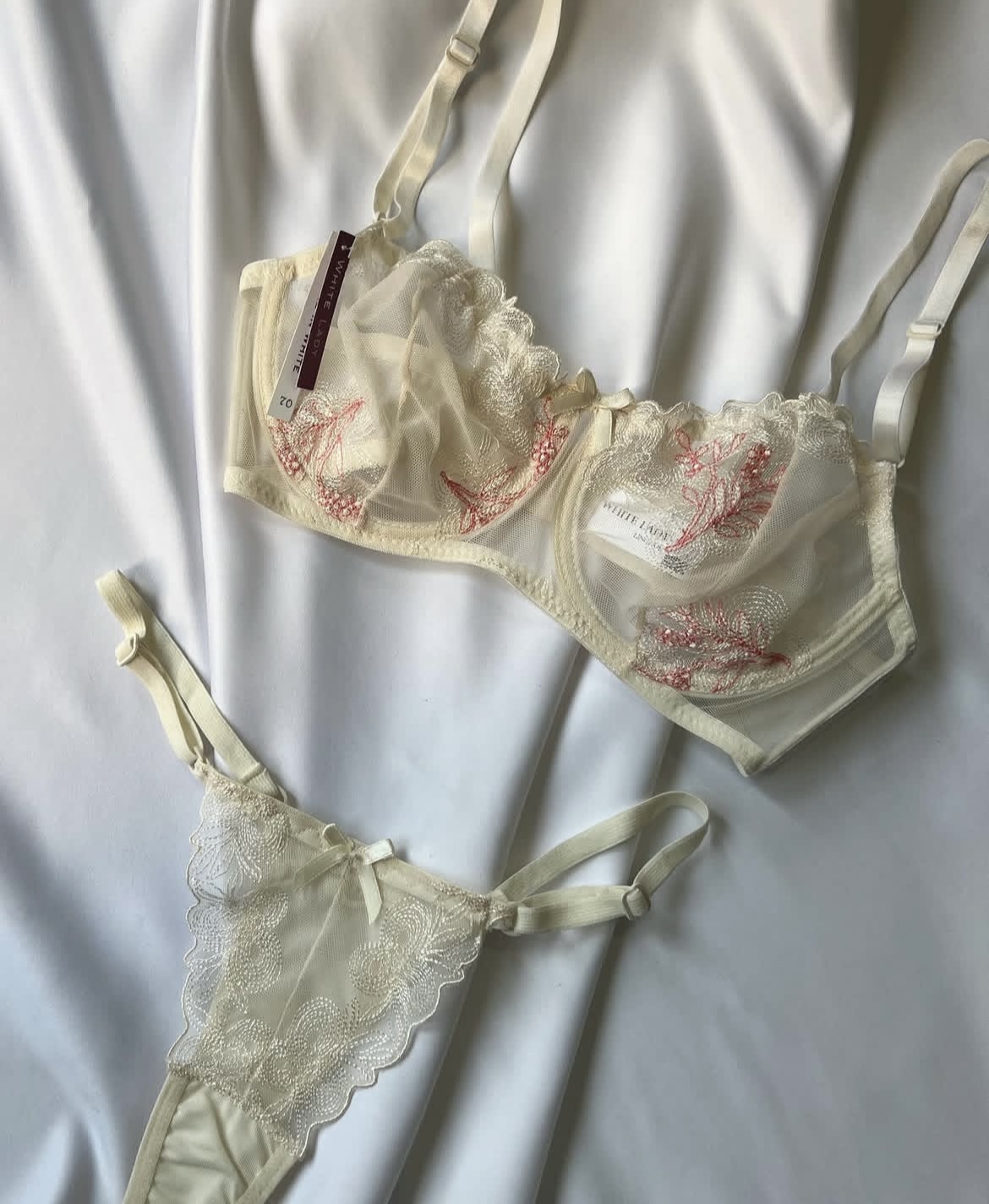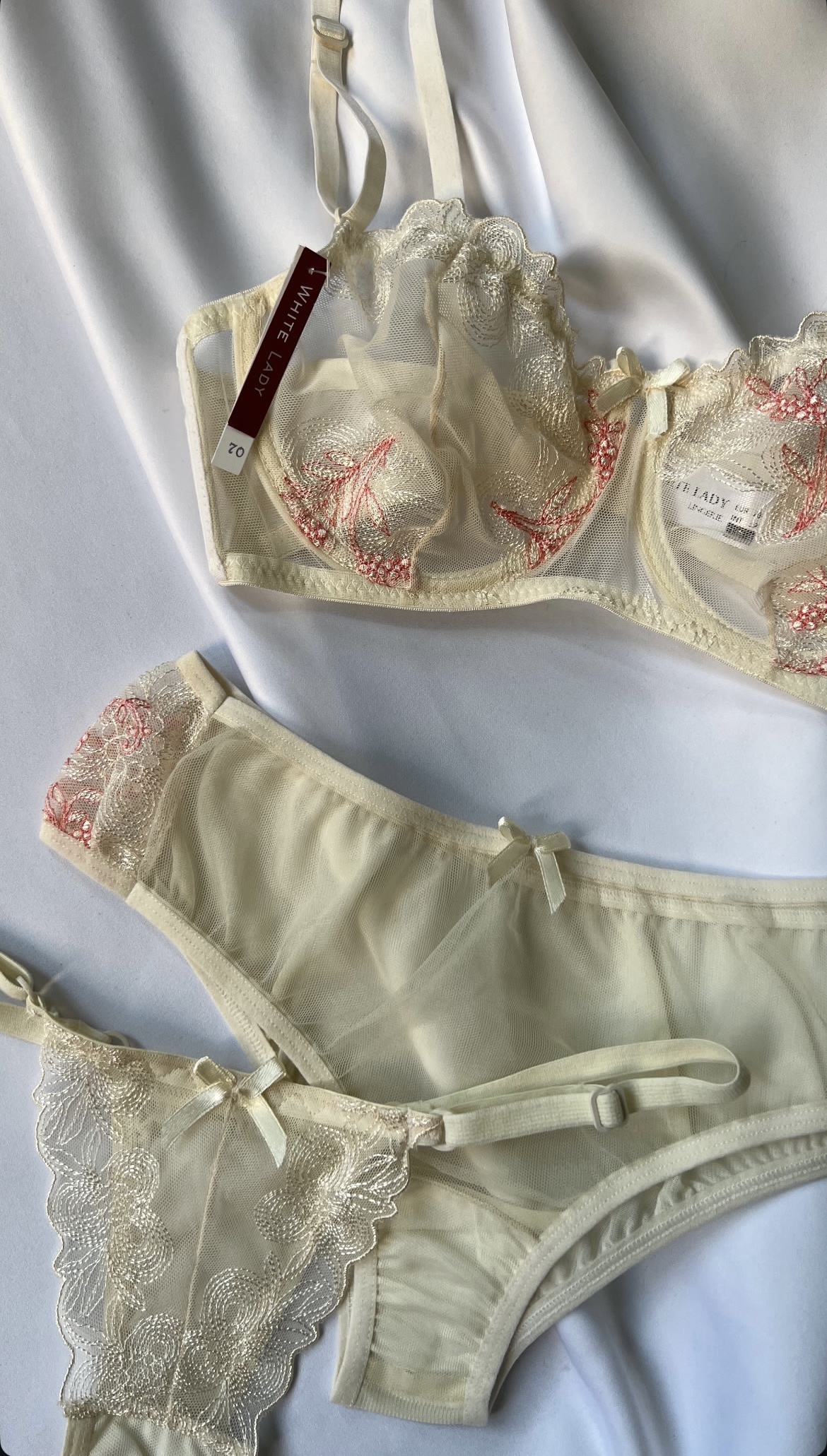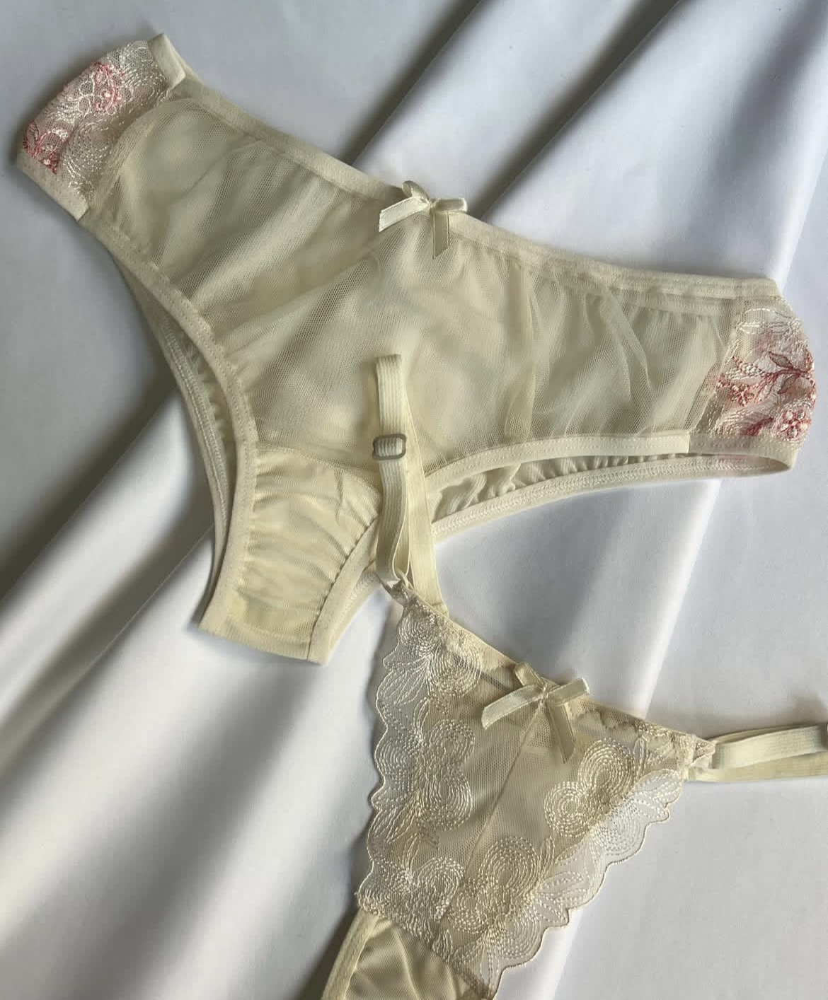 ست سه تیکه شیری فلاور( سوتین+دو عدد شورت )