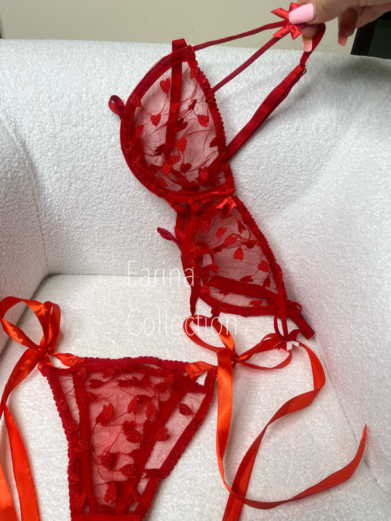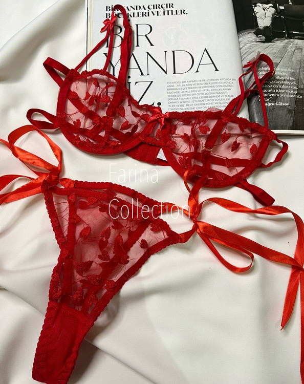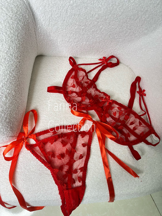 ست سوتین و شورت فانتزی وارداتی تعداد محدود نیم کاپ بند ظریف سوتین بند شورت گره ای میتونید هر مدل خواستید گره بزنید مناسب کاپ aوb 70 75 80 85 رنگ سفید مشکی صورتی یاسی قرمز