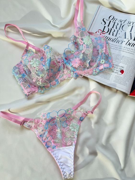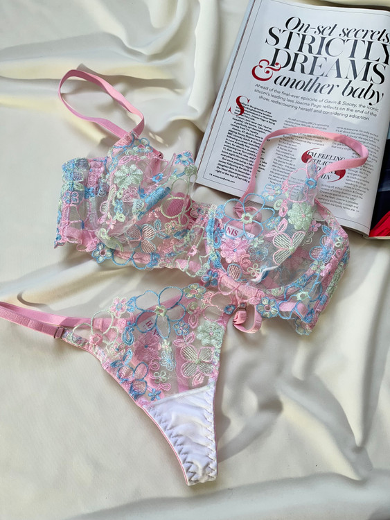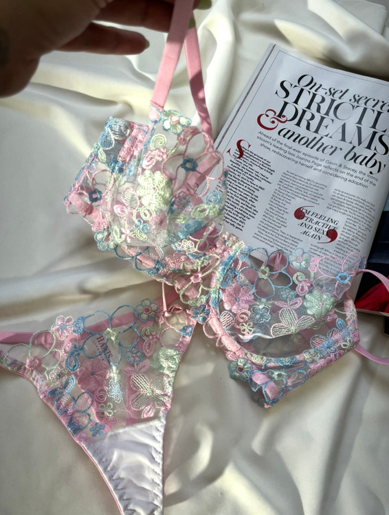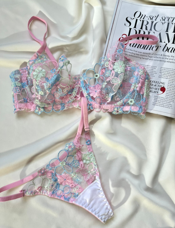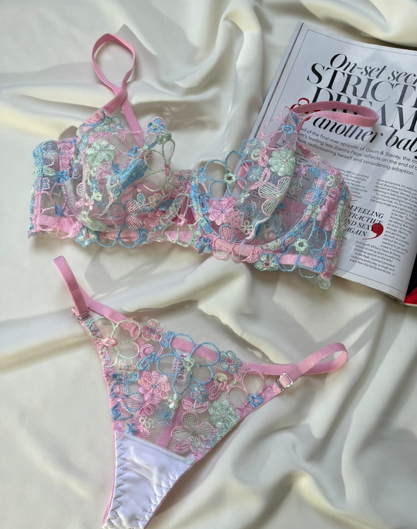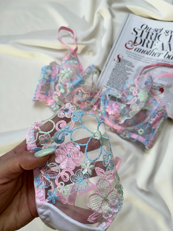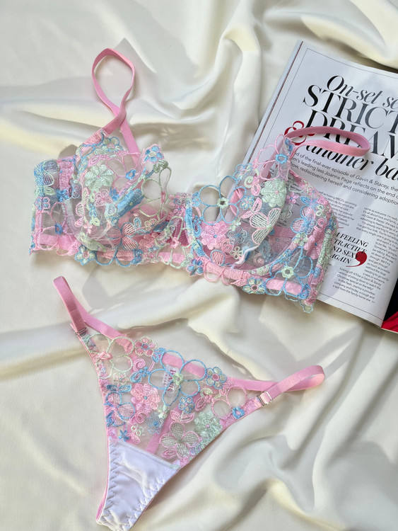 سوتین و شورت توری گیپوری اروپایی گلدوزی شده