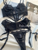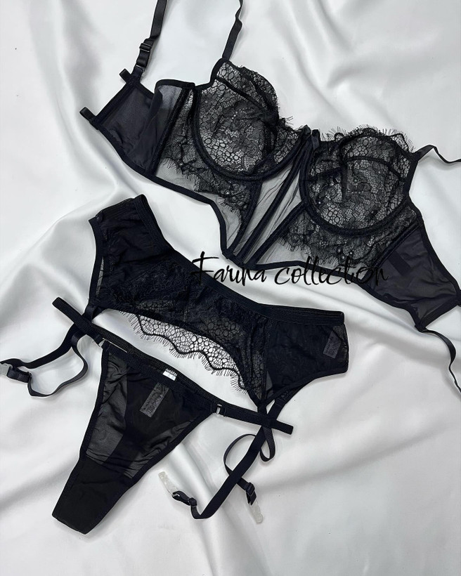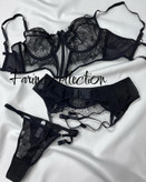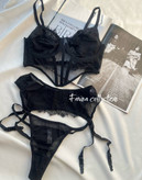 ست سه تیکه فنردار مشکی (سوتین وشورت و گارتر کمری)