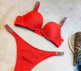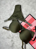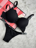 ست سوتین و شورت اسفنجی جک دوبل فننردار بندنگینی با نوشته pink secret برند victoria secret سایز بندی دارای رنگبندی سبز قرمز مشکی مات مشکی براق سرمه ای